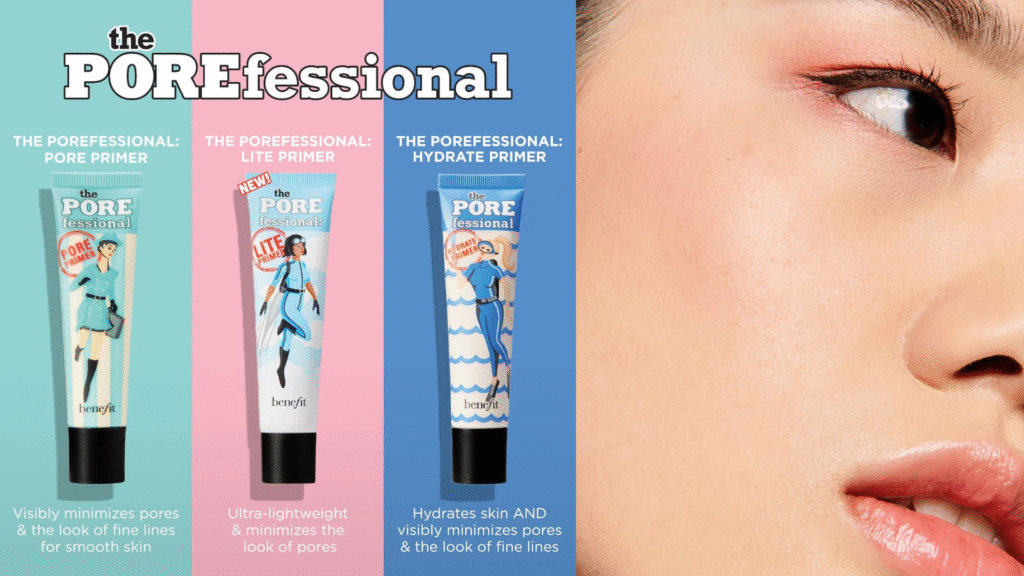 Benefit has expanded its POREfessional line to cater to different skin needs. While the original remains a bestseller, you can also find variations like The POREfessional Hydrate Primer for dry skin, The POREfessional Lite Primer for an ultra-lightweight feel, and The POREfessional: Matte Rescue for extra oil control. This range ensures there’s a POREfessional for every skin type.