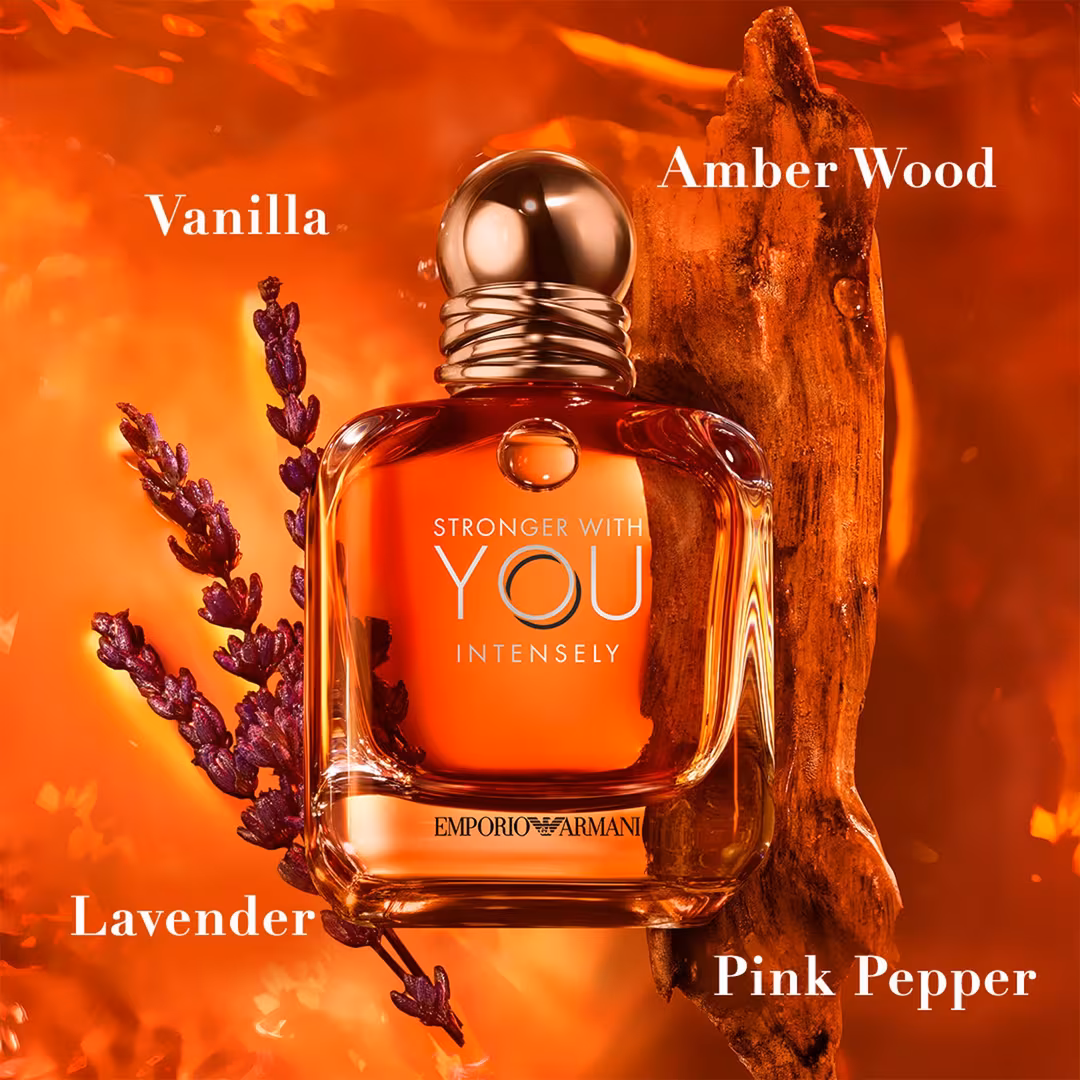 Armani Emporio Armani Stronger With You Intensely Eau de Parfum is a warm, spicy fragrance designed for the modern man seeking a bold, long-lasting scent. This amber-fougere blend features key notes of pink pepper and vanilla, perfect for evening wear or colder seasons.