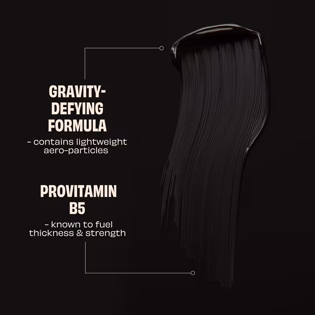 Get bigger, badder lashes with a formula that defies gravity. This innovative mascara features aero-particles—derived from space technology—to create intense volume without the heavy feel. The pitch-black pigment layers easily for a dramatic look that stays impactful for up to 36 hours. Plus, the streamlined brush is designed to grab every single lash from root to tip, ensuring no corner is left untouched.