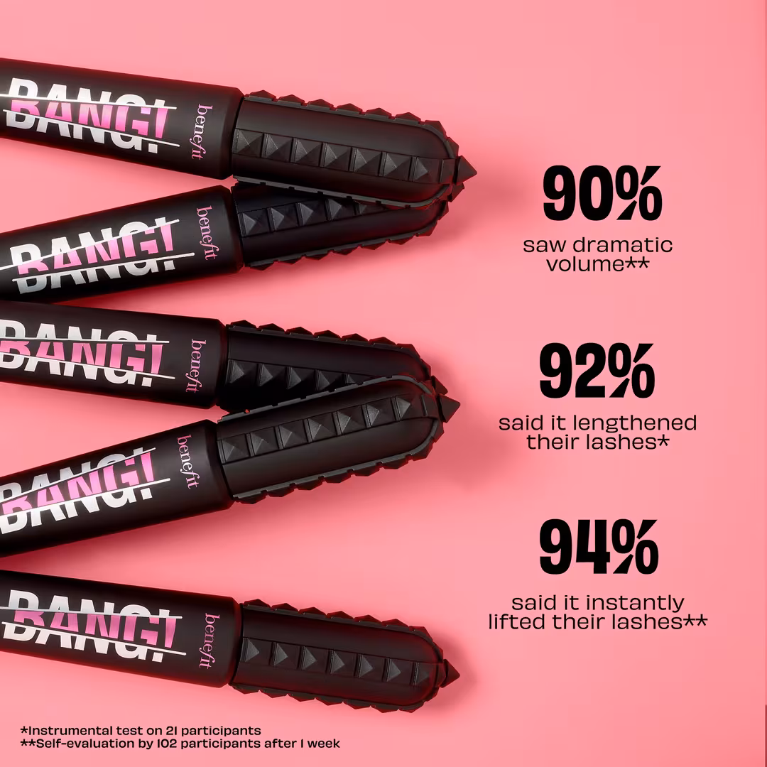 Clean IngredientsExperience 36-hour, full-blast volume with Benefit BADgal BANG! Mascara. This gravity-defying formula uses aero-particles to deliver massive lift without weighing down your lashes. It’s the perfect choice for anyone seeking intense, pitch-black drama and a bold, lightweight look.