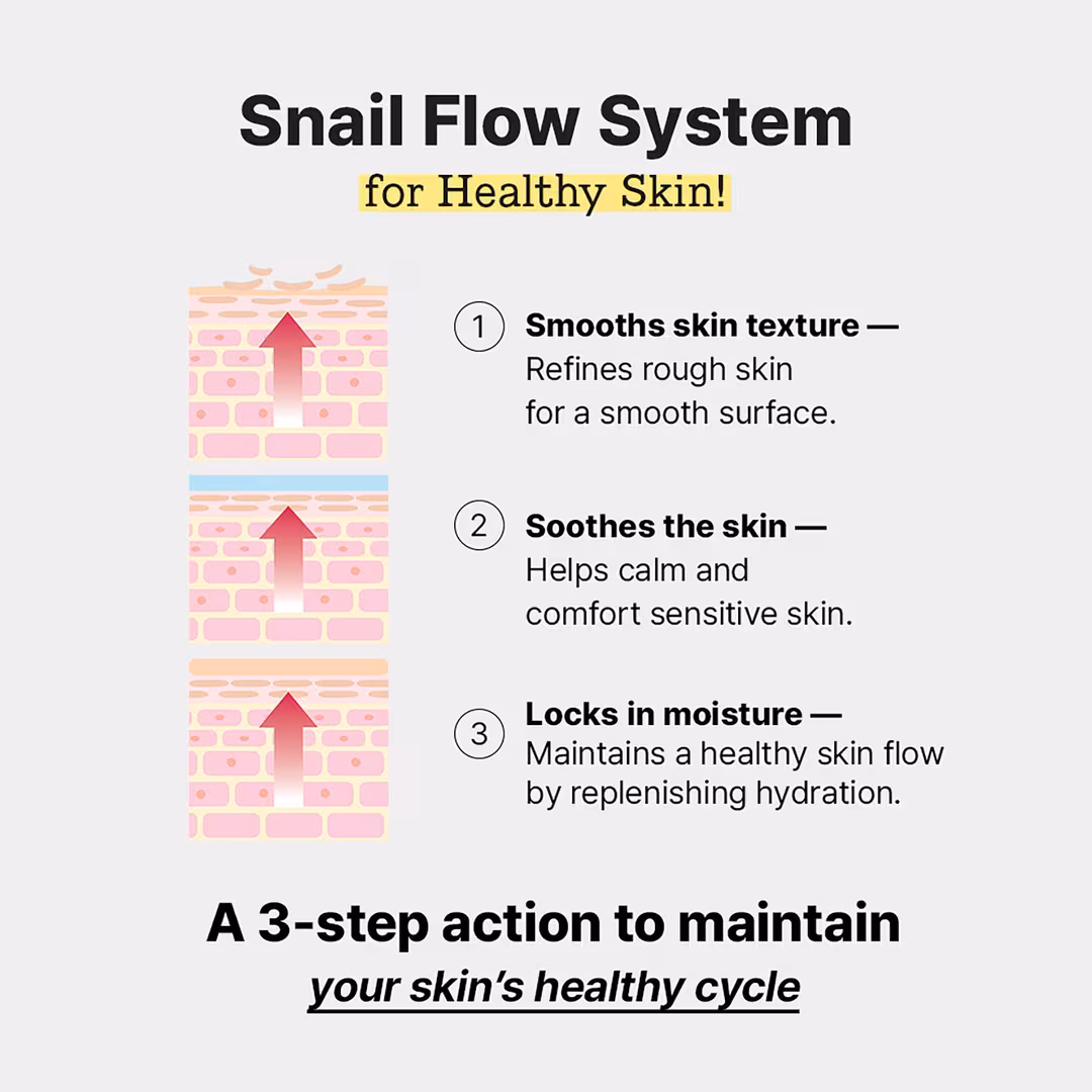 - Snail Secretion Filtrate: Delivers intense hydration and supports skin repair for a smoother, healthier-looking complexion.