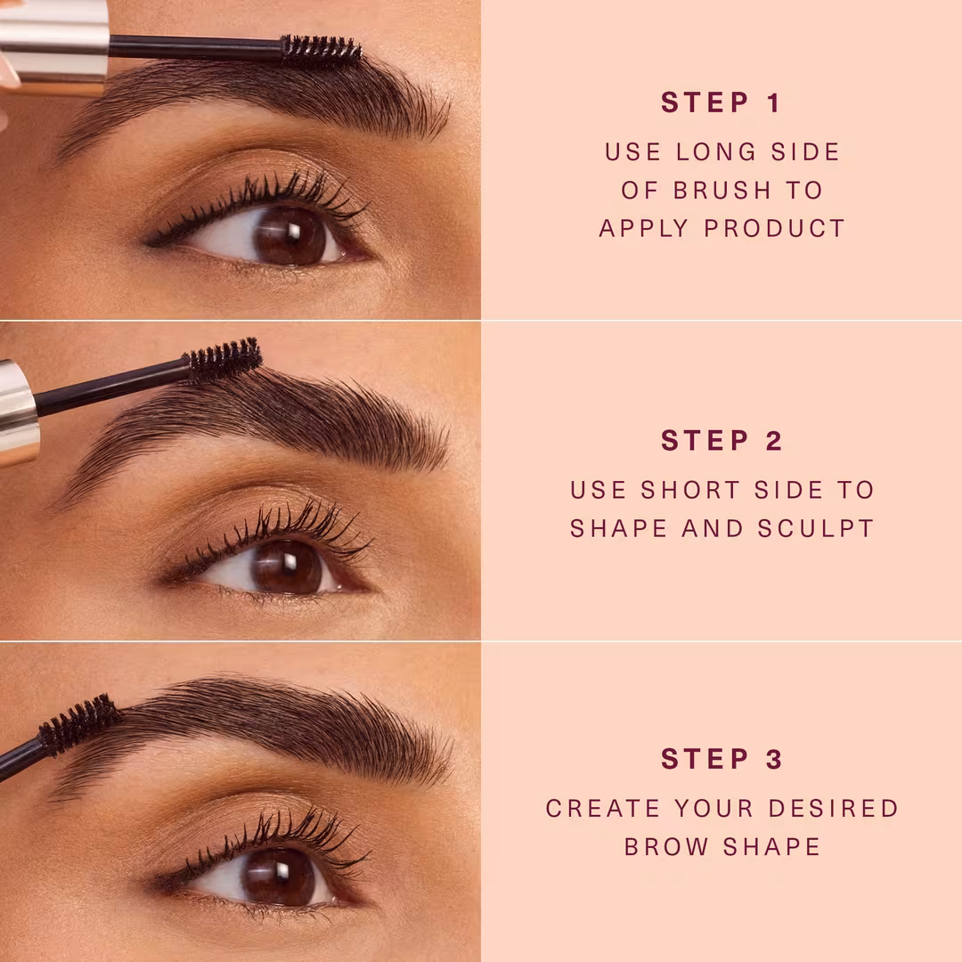 - Pro Tip 2: Backcomb the gel through your brows first, then brush them into place to coat every side of the hair for maximum volume.