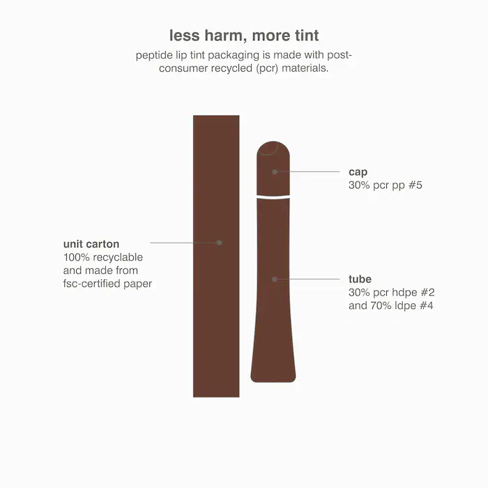 - Tube: 30% PCR HDPE #2 and 70% LDPE #4.
